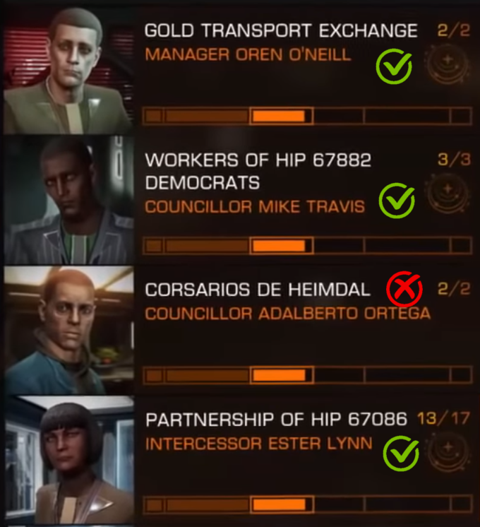 Once your ship is ready make your way to Perry’s Folly in Ochosi. Here you will be picking up missions from all the federation factions. Don’t bother taking missions from non-federation factions as they will not give you any rank increase. You can see which factions belong to the federation by the federation icon next to the faction name in the mission board.